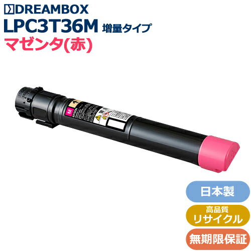 トナー&ドラム専門店 ドリームボックス EP社 LP-S9070対応のカートリッジ LPC3T36M マゼンタトナー(増量タイプ) (約24,900枚) 日本人スタッフが丁寧に作っている、日本製トナーです。 万が一弊社の商品が原因で不具合の場合、無期限で【代替品手配・修理代保証】致します。 ■メーカー定価 参考価格: --円(税抜)■ 【 LPC3T36K ブラックトナー 】(約22,400枚) ■ 【 LPC3T36C シアントナー 】(約19,100枚) ■ 【 LPC3T36M マゼン...[詳細を見る]