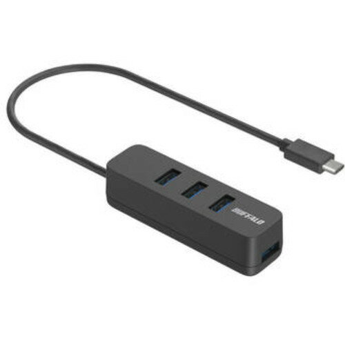 BUFFALO BSH4U320C1BK USBハブ ブラック ●お手持ちのUSB Type-A機器をType-C搭載パソコンで使えるUSB Type-Cを搭載したパソコンにお手持ちのUSB Type-A対応商品を合計4台接続できるUSBハブです。 ●USB 3.2(Gen 1)対応USB 3.2(Gen 1)規格の機器を接続可能。最大転送速度は5Gbps(規格値)です。 ●片手で挿しやすい上挿しタイプ 3ポートを上面に配置。USBメモリーなどを片手で簡単に挿し込めます。大きめのコネクターはサイドのポー...[詳細を見る]