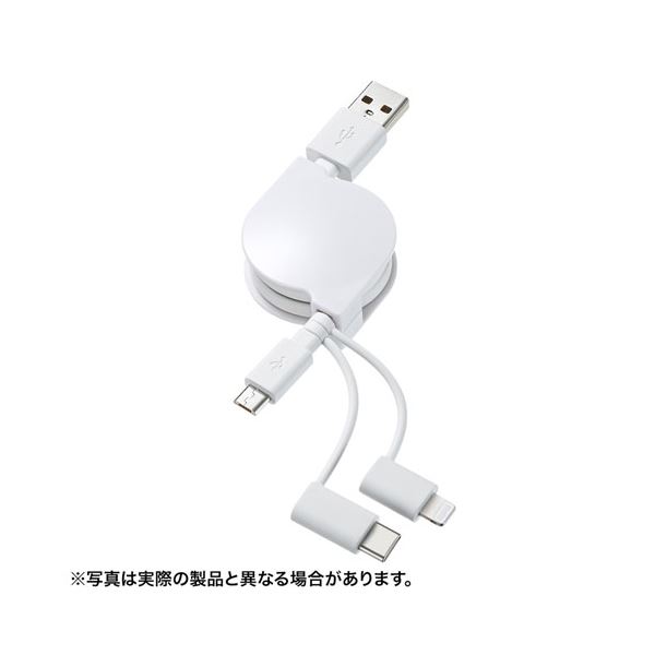 ■商品内容3in1 充電ケーブル ライトニング マイクロUSB USB Type-C巻取りケーブル(Lightning・microUSB・Type-C対応・MFi認証品・通信・3Way・ホワイト)2つの変換アダプタ付で、ライトニングケーブル、USB2.0Type-Cケーブル、microUSBケーブルとして使用できる、巻取り式USBケーブルです。ケーブル1本で、3種類のコネクタを搭載した機器の充電、データ通信をする事ができます。※1ケーブルは最長1mの巻き取り式で、お好みの長...[詳細を見る]