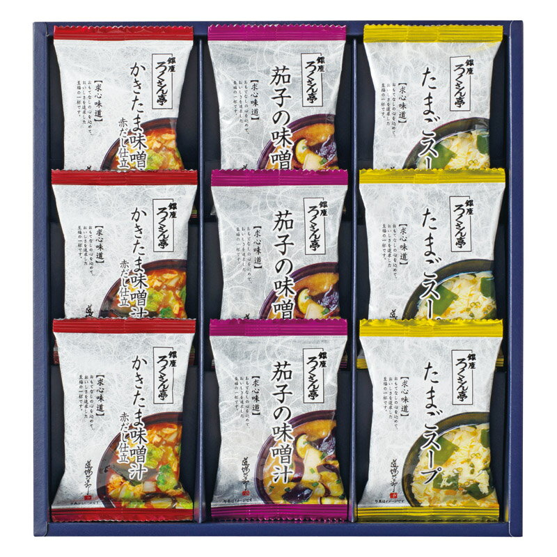 【商品説明】素材と味付けにこだわって、香り立つ美味しさをそのままパックしました。 【内容】たまごスープ・茄子の味噌汁・かきたま味噌汁赤だし仕立×各3 【型番】ML-15 【箱サイズ】化粧箱:約260×250×32mm(入) 【箱入重量】約221g 【アレルギー】卵・小麦[詳細を見る]