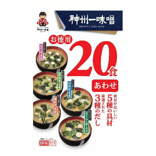 ご注文前にご確認ください※ 12時から14時の時間帯指定はできません。ご指定の場合は14時から16時にて手配いたします。商品説明★ 20食入りのお買い得タイプ。具は5種類。それぞれの具に合わせて最適なだしを使用しました・わかめ汁…昆布だし ・とうふ汁…いりこだし・長ねぎ汁、油あげ汁、ほうれん草汁…かつおだし いつまでも飽きのこないおいしさの合わせみそ仕立てです。※メーカーの都合により、パッケージ・仕様・成分・生産国...[詳細を見る]