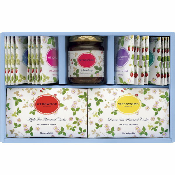 NEW! 【全国送料一律 税込440円】 1759年創業以来永きに渡り、英国紅茶文化に深く関わってきた「ウェッジウッド」。【内容】 ブレックファスト・ストロベリー・アールグレイシトラス・アフタヌーン 各4袋、ストロベリージャム140g、ティークッキー(アップル・レモン) 各80g【品番】 6115_P127[詳細を見る]