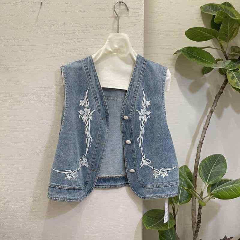 ベスト レディース 秋冬 刺繡 デニム ベスト レトロ カーディガン ノースリーブ トップス 上着 羽織り