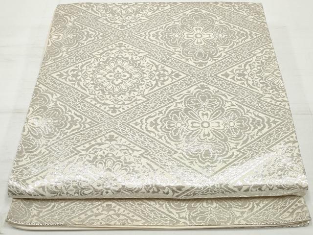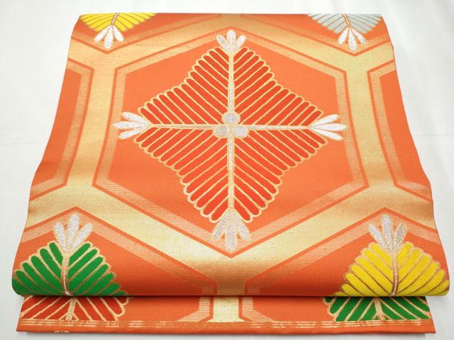 <帯サイズ>(単位:cm) 長さ 424 幅 31 状態 非常によい 素材 正絹 色目 金 【商品説明】 帯幅部分折れ山線に薄くすみと無地部分に薄アクが有ります。 裏面に多少の薄くすみが有ります。 状態は大変良いです。 着用可能です。【茶道具・茶道・着物】毘沙門亀甲模様織り出し袋帯(着用可)【アンティーク】【中古】【着】【袋帯】 宗sou[詳細を見る]