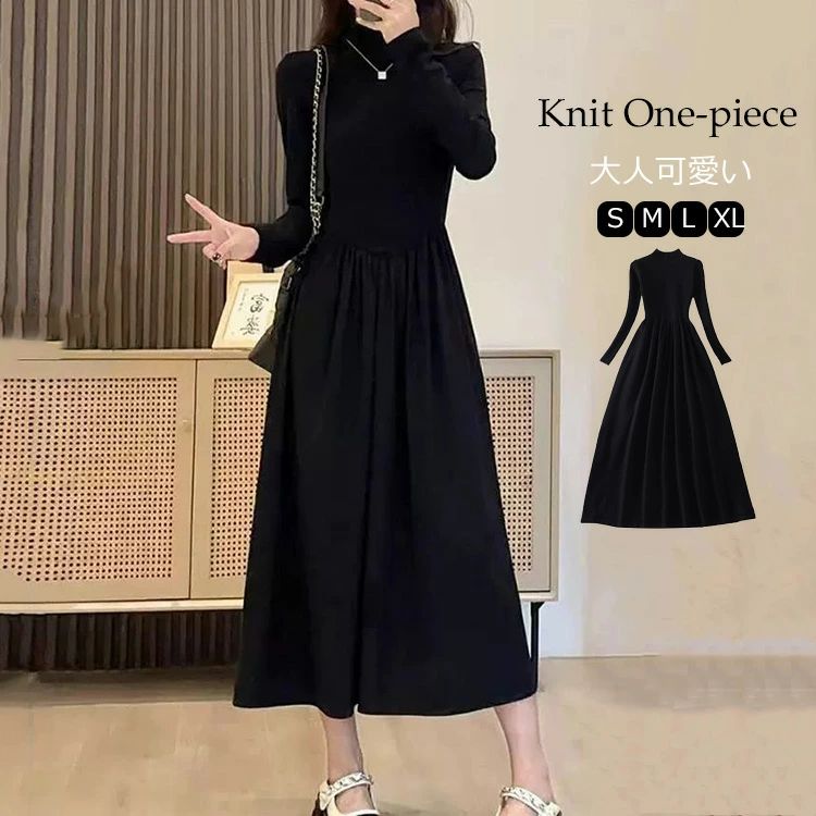 ◆フレアニットワンピースです。 ◆広がるシルエットとハイネックデザイン、1枚で大人上品に。 ◆ハイウエストの切替で脚長効果に◎ ◆程良い厚みのニットでアウターとも好相性です。 【商品情報】 ■サイズ(約cm) 表示サイズ:S/M/L/XL バスト:76/78/80/82cm 袖丈:53/54/55/56cm 肩幅:34/35/36/37cm 総長:107/108/109/110cm ■備考 【素材】ポリエステル 【セット内容】ワンピース単品 【透け感】なし 【裏地】なし ※寸法は手測り...[詳細を見る]