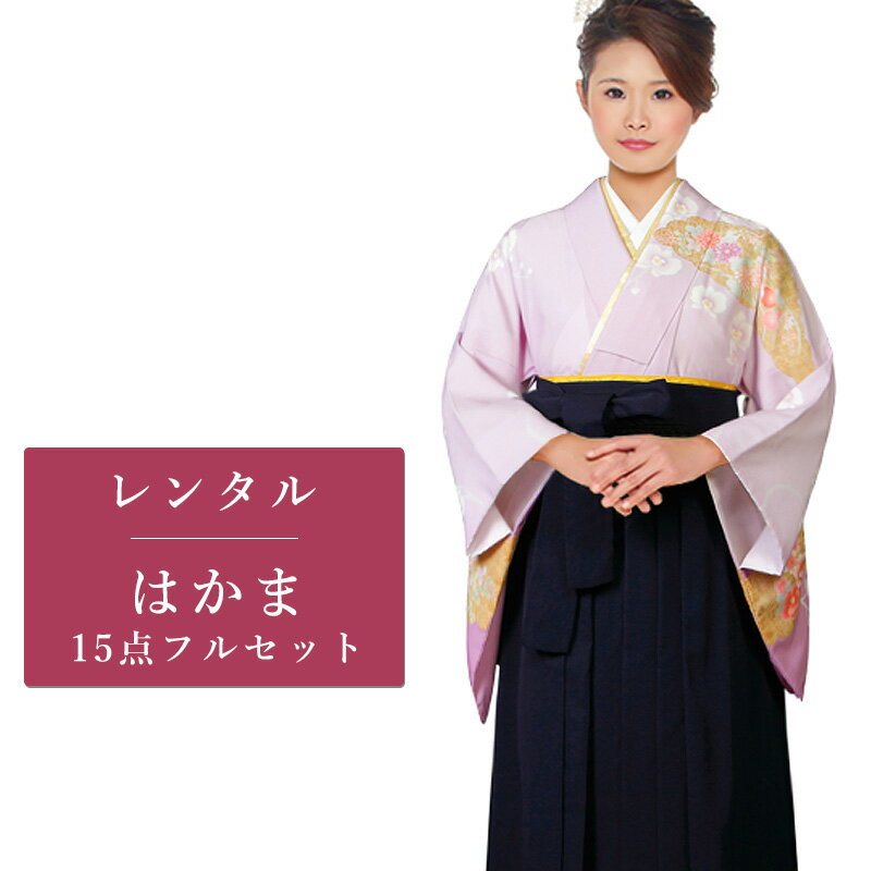 着物寸法詳細(cm) 肩裄 袖丈 68 49 素材 表地、袴:ポリエステル100% 長襦袢:ポリエステル100% 帯:ウールまたは合成繊維 足袋:綿 色 紫 柄 花柄、古典柄 セット内容 着物、袴、半幅帯、長襦袢、草履、重衿、腰紐4本、伊達締め2本、足袋(プレゼント)、衿芯、コーリンベルト、前板※草履不要をご選択された場合は、草履と足袋は省いてお届けいたします。 備考 こちらの商品は、レンタル商品です。 ※画像の袴・帯・重衿・草履...[詳細を見る]