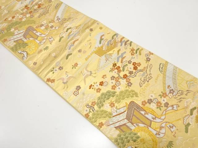 サイズ 454cm x 31.5cm 素材 正絹 商品ランク A(新品もしくは未使用品で大変綺麗な状態の物。) ●お色 黒色 多色 金 未使用の美しいお品物です。 少し保管臭が残っています。匂いに敏感な方はご購入をお控えください。 写真に写っている帯のみの販売で、小物等の付属品はついておりません。 一部商品は実店舗・他サイトでも並行して販売しておりますので売り切れの際はご了承ください。 n 【 商品ランク表 】ランクは厳しめ...[詳細を見る]