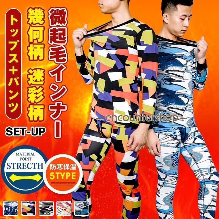 微起毛インナー メンズ インナーセット あったかインナー 発熱インナー 上下セット インナー 幾何柄 迷彩柄 長袖 肌着 ロングパンツ 保温 暖かい 防寒 ストレッチ プルオーバー 防寒対策 冬対策 【品 番】xiaorui01【カラー】A、B、C、D、E【サイズ】L XL 2XL 3XL 4XL【素 材】ポリエステル【ご注意】※生地の性質上、多少縮む場合がございます。※色落ちする場合がございますので、他の物との洗濯はお避け下さい。※長時間の水...[詳細を見る]