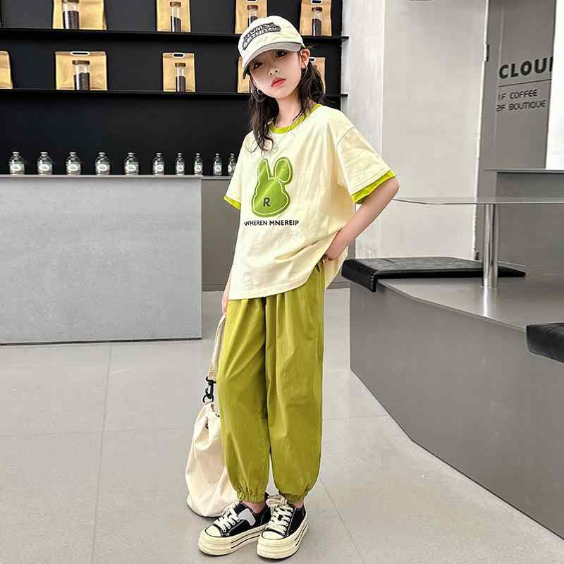 ・対象: 女の子・スタイル: 韓国・セット内容: パンツ、Tシャツ (2点セット)・対象年齢: 中・高学年 (8歳以上)・シーズン: 夏・袖丈: 半袖・パンツ丈: 九分丈・生地加工: 柔らか обработка・厚さ: 普通・柄: アルファベット・素材: 綿・安全レベル: B・クロージャー: プルオーバー・色: グリーン (アボカド柄), Tシャツ (アボカド柄)・対応身長: 120cm, 130cm, 140cm, 150cm, 160cm, 170cm, 180cm・カテゴリ: 子供用セットアップ[詳細を見る]