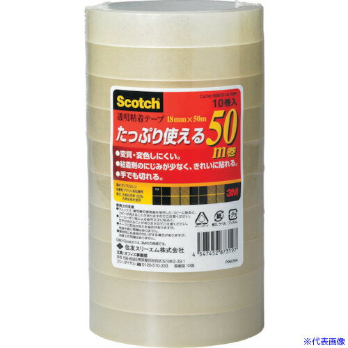 オレンジブック トラスコ中山 TRUSCO3M 透明粘着テープ500 18mmX50m 10巻パック 〔品番:50031810P〕[ 注番:5421136]特長●コストパフォーマンスに優れた事務用粘着テープです。●変質・変色しにくいポリプロピレン基材と、粘着剤のにじみが少なく、きれいに貼れるアクリル系粘着剤を使用しています。仕様●幅(mm):18●長さ(m):50●厚さ(mm):0.045●巻芯径(mm):76●テープ厚(mm):0.045仕様2●シュリンクパック(10巻入り)材質/仕上●...[詳細を見る]