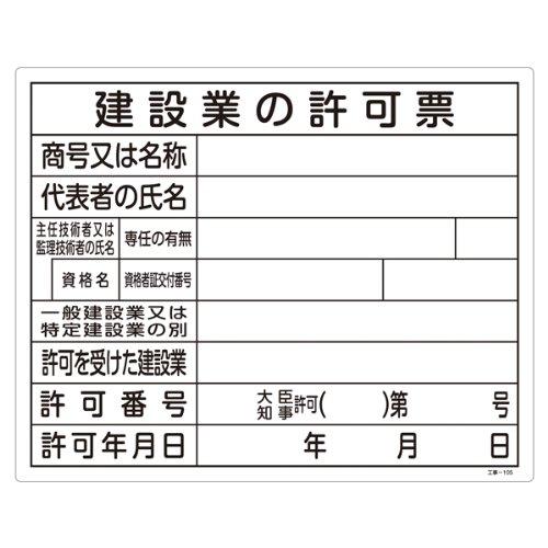 緑十字 工事用標識 工事-105 建設業の許可票 130105