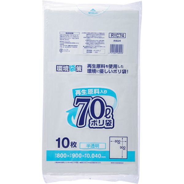 ・再生プラスチックを40%使用したポリ袋です。・70Lポリ袋・ゴミ袋、非食品用。・縦(mm):900・横(mm):800・厚さ(mm):0.04・容量(L):70・色:半透明・グリーン購入法適合・エコマーク・LLDPE+再生原料・生産国 インドネシア・JANコード 4521684160058・質量 500g・コード:389-1096 ・品目:RYC74RYC74楽天 HD店[詳細を見る]
