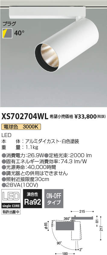 「美しい光」と「美しいプロポーション」にこだわったプロフェッショナルスポットライト。建築空間になじむシンプルなシリンダー形状、空間を邪魔しないフレアのない配光にこだわりました。電球色 3000K定格光束:2000lm消費電力:26.9W28VA(100V)演色性Ra92ON-OFFタイププラグタイプ本体:アルミダイカスト・白色塗装重量:1.1kg調光器との併用はできません照射近接限度30cm【LED照明】 【プラグタイプ】 【電球色】 【非調...[詳細を見る]