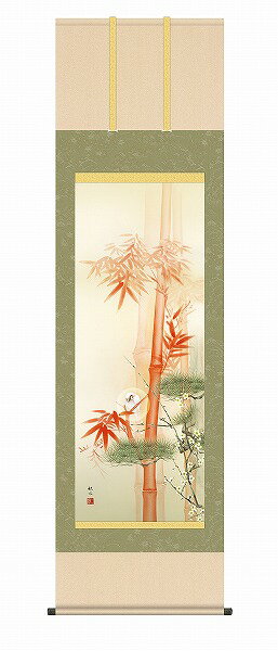 掛軸 松竹梅鶴亀 長江桂舟 尺三 慶祝・縁起の掛け軸 H29MC1-027 【代引き不可】