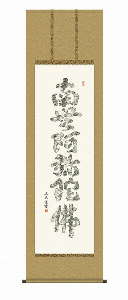 弘法様と崇められるその御遺徳を忍ぶ名号作品 日々心静かに唱えることで平安と浄福の境地へと導かれる尊い御名号。あらゆる仏事はもちろん、日常掛として日々のおつとめにお掲げください。 ●幅44.5×高さ164cm ●本紙・・・新絹本 ●軸先・・・陶器 ●化粧箱収納 ●表装品質十年間保証付き 日本画構図の開発と国内生産品にこだわった製品です! 作品は特殊印刷に手彩色仕上げとなっています。 ※受注制作・取寄せのため1週間程度(土...[詳細を見る]