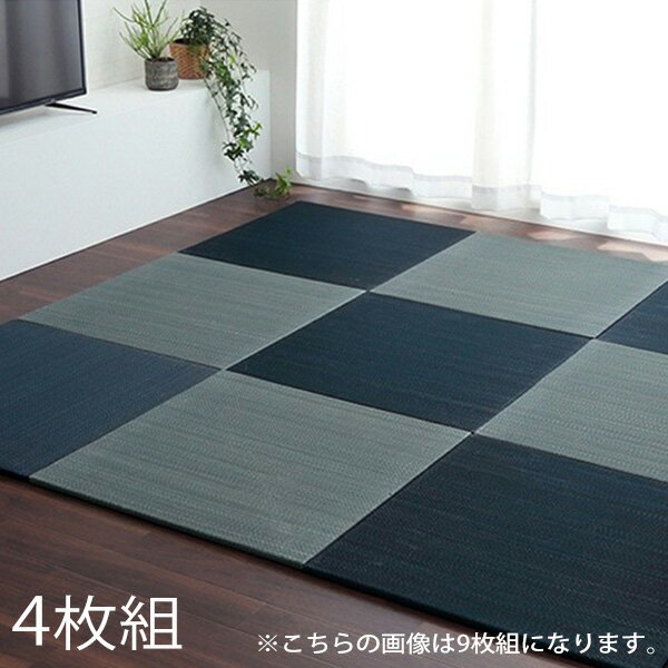 イケヒコ ユニット畳 無地 70×70cm 4枚組 ネイビー/グレー [ イ草 い草 畳 たたみ タタミ 置き畳 ヘリ無...
