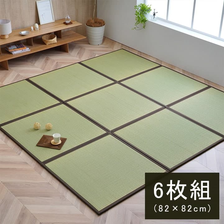 サイズ 82×82×1.7cm 6枚組 カラー ブラウン 組成 表地=い草 ※双目織 中材=ヒバ硬綿15mm 裏地=連結用ジョイント付 ヘリ=PP、PE" 原産国 日本 洗濯表示 洗えません。 商品説明 届いたユニット畳を床に置くだけで和のスペースが出来上がります。表生地には国産(九州産)のい草を使用しています。一本一本が太く、表皮が厚く、繊維がキメ細かいので弾力性があり、耐久性に優れています。い草には空気の自然浄化作用、湿度の調節作...[詳細を見る]