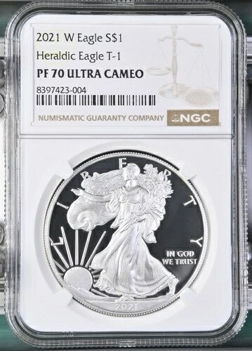 2021 W Bullion Silver Eagles NGC PF-70 ULTRA CAMEO Heraldic Eagle T-1商品について組成:銀認証番号:8397423-004刻印の種類:プルーフ純度:0.999品位:PF 70KM番号:不明Aureus 製品参照番号:554658単位あたりの貴金属含有量:1オンスブランド/造幣局:アメリカ造幣局認証:NGC流通/非流通:非流通額面:ドルコイン:アメリカン・イーグル年:2021年造幣局所在地:ウェストポイント製造国/地域:アメリカ合衆国総貴金属...[詳細を見る]