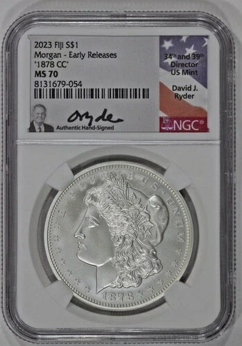 2023 Fiji "1878 CC" Morgan Silver Dollar NGC MS70 Early Release Signed Label商品について認証:NGC組成:銀純度:0.999発行年:2023年グレード:MS 70流通/未使用:未使用認証番号:8131679-054製造国/地域:フィジー額面:1ドル注意事項※以下の注意事項をご理解のうえ、ご購入ください■ 鑑定済みコイン・紙幣について各種コイン・紙幣の鑑定機関(NGC、PCGS、PMGなど)は、収集品の真贋鑑定およびグレーディングを行う専...[詳細を見る]