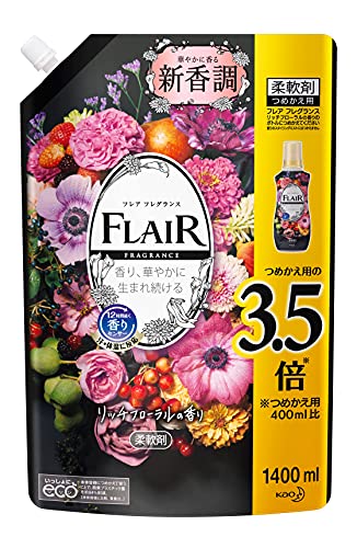 リッチフローラルの香り・黒 1400ml 4901301398451・・ScentName:パチュリSize:1400ml・スパウトパウチ・ブラント名:フレアフレグランス・メーカー名: 花王・商品の重量: 1430g・原材料: 界面活性剤(エステル型ジアルキルアンモニウム塩)、香料、安定化剤説明 商品紹介 独自技術「汗・体温に反応する香りセンサー」で、これまで消えやすかったやさしい香りも、繊維内部にしっかり閉じ込めます。 だから、香りの第一印象が一日中...[詳細を見る]