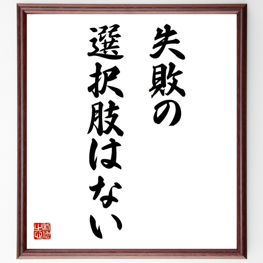 【商品説明】名言「失敗の選択肢はない」を書道家が毛筆書道で色紙に直筆、額に入れてお届けします。当店では挑戦、努力、成功、幸福、感謝、成長、家族、仕事、自己啓発など様々なテーマから人生の糧となる名言、四字熟語、諺、故事成語、格言を厳選、毛筆で直筆、お届けしています。これまで、6,000名以上の方からご注文いただき、お届けしてきました。身の回りにあるモノの多くがパソコン等でデザインされるようになった今、...[詳細を見る]