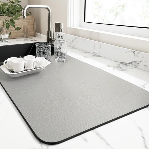 【水切りマット】素材:表面:PUレザー、中材:珪藻土、裏材:ゴム。珪藻土が含まれて、吸水力が抜群です。食器を乾燥しやすいです。吸水した水分を素早くマット内に拡散。大判サイズなのでカップ、お皿もらくらく置くことができます。 【食器水切りマット】食器を洗った後水切りマットの上に置くって早く水を流れやらせます。柔らかいソフトマットなので丸めてコンパクトに収納可能。スペースを節約しやすいです。 【滑り止め】裏...[詳細を見る]