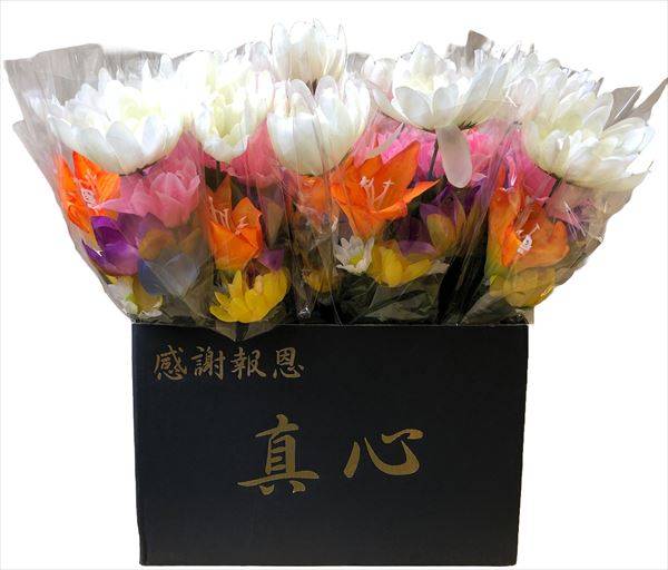商品紹介 お仏壇にお墓に、キレイに長持ち、お手軽に メーカー名: 関連ワード:【 仏具 】 商品説明:生花に比べ、水変えなどがなく、また長持ちするので、持ち運びや管理が楽。お墓やお仏壇などもキレイに保てます。外でのお供えも獣害なども起こりにくい。伝統的な仏花の形をしているので色どりもまとまっており同じように使えます。値段もお手軽です。商品画像と同じ「真心」展示用箱付き、ラップ入り商品です。配送された...[詳細を見る]