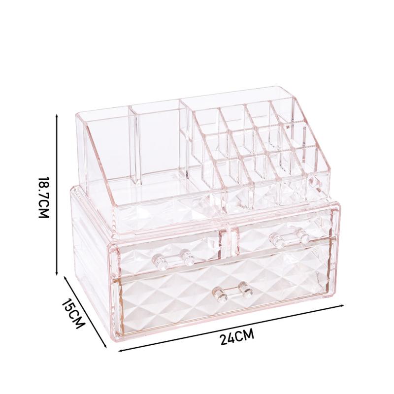 24個セットコスメボックス メイクボックス 透明 大容量 引き出し式 ドレッサー 口紅 化粧品 収納 アクリル製 デスク上 卓上 ピンク系[詳細を見る]
