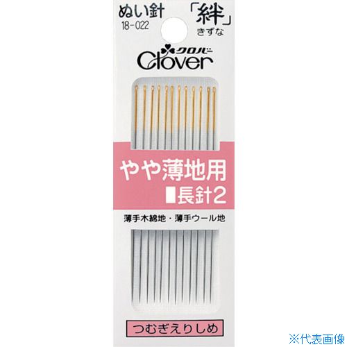 オレンジブック トラスコ中山 TRUSCOCLOVER 絆 やや薄地用 長針2 〔品番:18022〕[ 注番:1148431]特長●糸の通しやすい独自の楕円穴です。●折れにくく曲がりにくい針軸です。●布通りのよい鋭く強い針先です。●ニッケルメッキ後、クロバー独自の先付研磨(先直し)で、針先から0.5mmくらいの所を円すい状に研削し、尖った針先を強化。鋭く、強く、布通りのよい針先にしています。用途●薄手木綿地、薄手ウール地に。仕様●太さ(mm):0...[詳細を見る]