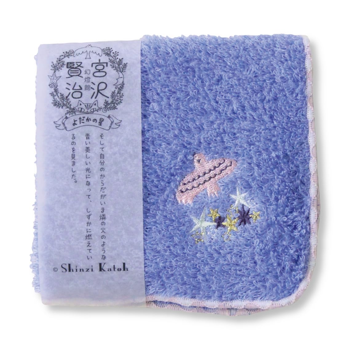 • サイズ:約23×23cm、重量:約16g • 素材:綿100%、甘撚りパイル生地 • 生産:日本 • 通常よりも細い糸を甘く撚った、ふわふわした心地よい肌ざわりが特徴の日本製のタオルハンカチ。カバンにいれても邪魔にならないコンパクトサイズで、お出かけにもピッタリ。 • 人気雑貨デザイナー「シンジカトウ」が宮沢賢治の「幻燈館」をイメージして描いたイラストを、優しい色合いの生地に作品モチーフを刺繍にしてデザインしました。...[詳細を見る]