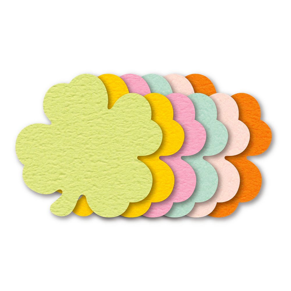 クローバー型をかたどった抜型カード「ぷちカード」です。6色セット(オレンジ・イエロー・ピンク・ピーチ・ライム・ブルー 各2枚)になっているため、学校の工作や卒業式の色紙などに添えるメッセージカードとして使っても単調になりません。しっかりとした厚みで素材感のある特殊紙(210g/m2)を使用。メッセージカードやPOPとしてもそのまま使用できる厚みがあります。【詳細】入り数:12枚(6色各2枚)袋入サイズ:縦73mm×...[詳細を見る]