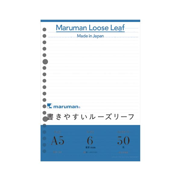 ■サイズ・色違い・関連商品■7mm罫■6mm罫【当ページ】■商品内容【ご注意事項】この商品は下記内容×20セットでお届けします。マルマン ルーズリーフ A5判(20穴) 6mm罫 50枚入■商品スペック●罫種類:中細罫(6mm罫×29行)●外寸:縦210×横148mm●穴数:20穴●目盛入■送料・配送についての注意事項●本商品の出荷目安は【1 - 4営業日 ※土日・祝除く】となります。●お取り寄せ商品のため、稀にご注文入れ違い等により欠品・遅延となる...[詳細を見る]
