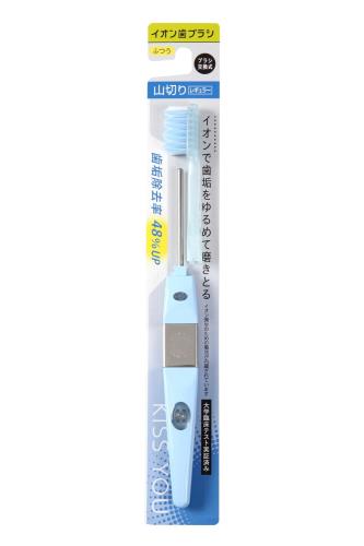 イオン歯ブラシ KISS YOU(キスユー) の山切レギュラー(ふつう) 本体 歯と歯の隙間にフィットする山切りカット 全面山切りになっているので、歯間がスッキリ磨けます 毛のかたさ / ふつう 内容量 / KISS YOU(キスユー) 山切レギュラー ふつう 本体 (1本) ※色はお選びいただけません。[詳細を見る]