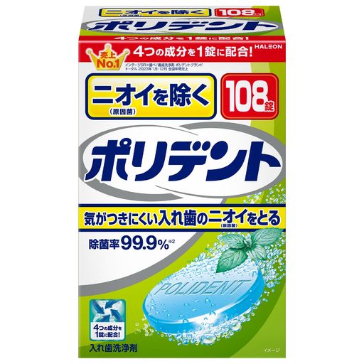 気がつきにくい入れ歯の匂いもスッキリ爽快に洗浄する、発泡性の入れ歯洗浄剤 入れ歯をミントの香りですっきりさわやかに 強力除菌:一日中使った入れ歯に繁殖したカビの一種やニオイの原因菌を99.9%*除菌します。*当社調べ(invitro) 速効洗浄:1回目からの使用でも、洗浄時間わずか5分で入れ歯を徹底的にきれいにします。 漂白促進:入れ歯の表面の見えない小さな穴まで効果が行き渡ります。 着色汚れ落とし:傷つけずに、入れ歯に...[詳細を見る]