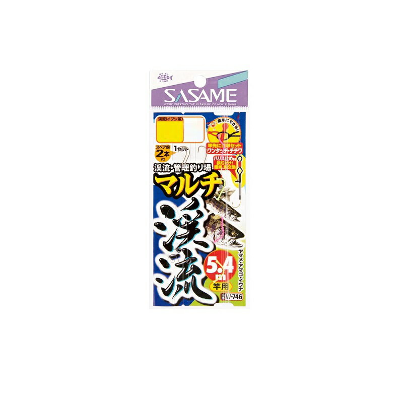 仕様表ワンタッチチワワ、鈎の交換が簡単ハリス止め使用で初心者も扱いやすい設計。SASAME W-746ササメ W-746 マルチ渓流 4.5m竿用●品番:W-746●全長:5.2m●仕様:1本鈎+スペア鈎2本●鈎、パーツ:渓流(茶)/ガン玉/ハリス止め●号数:6●ハリス:0.4●モトス:0.6詳細はこちら[詳細を見る]