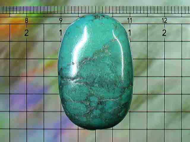 (turquoise ターコイズ トルコ石 とるこいし)〔天然石 ビーズ〕〔大粒〕〔青系〕〔緑系〕 大きなオーバル型に仕上げられた、グレードの高いターコイズです。 天然の色合いと模様が楽しめる商品です。 上下に1mm程度の貫通穴が開いています。 写真は、表、裏、上部、の各1枚。定規の上に載せて撮影しています。 上部に1mm単位のメモリ、石の周りには5ミリ角のメモリが一緒に写っています。 (上部の写真は石の厚みや雰囲気が伝わ...[詳細を見る]