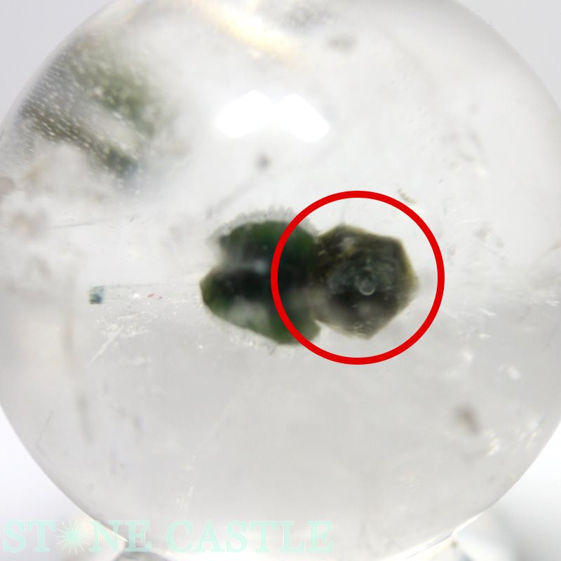 【特徴】透明度の高い水晶にまるで可愛い毬藻が浮かんでいるかのようです!その内包された鉱物を貫くかのように別の結晶が入り込んでおり、このような形を中国風水では「銭串」と呼び財運のお守りとされています。しかも良く見ると気泡が入っており、そこには太古の水が含まれています。この水は「不老長寿の秘薬」と言われており、中国の歴代皇帝に重宝されてきました。【仕様】直径:約41mm重さ:約99g※玉台は別売りです。【...[詳細を見る]