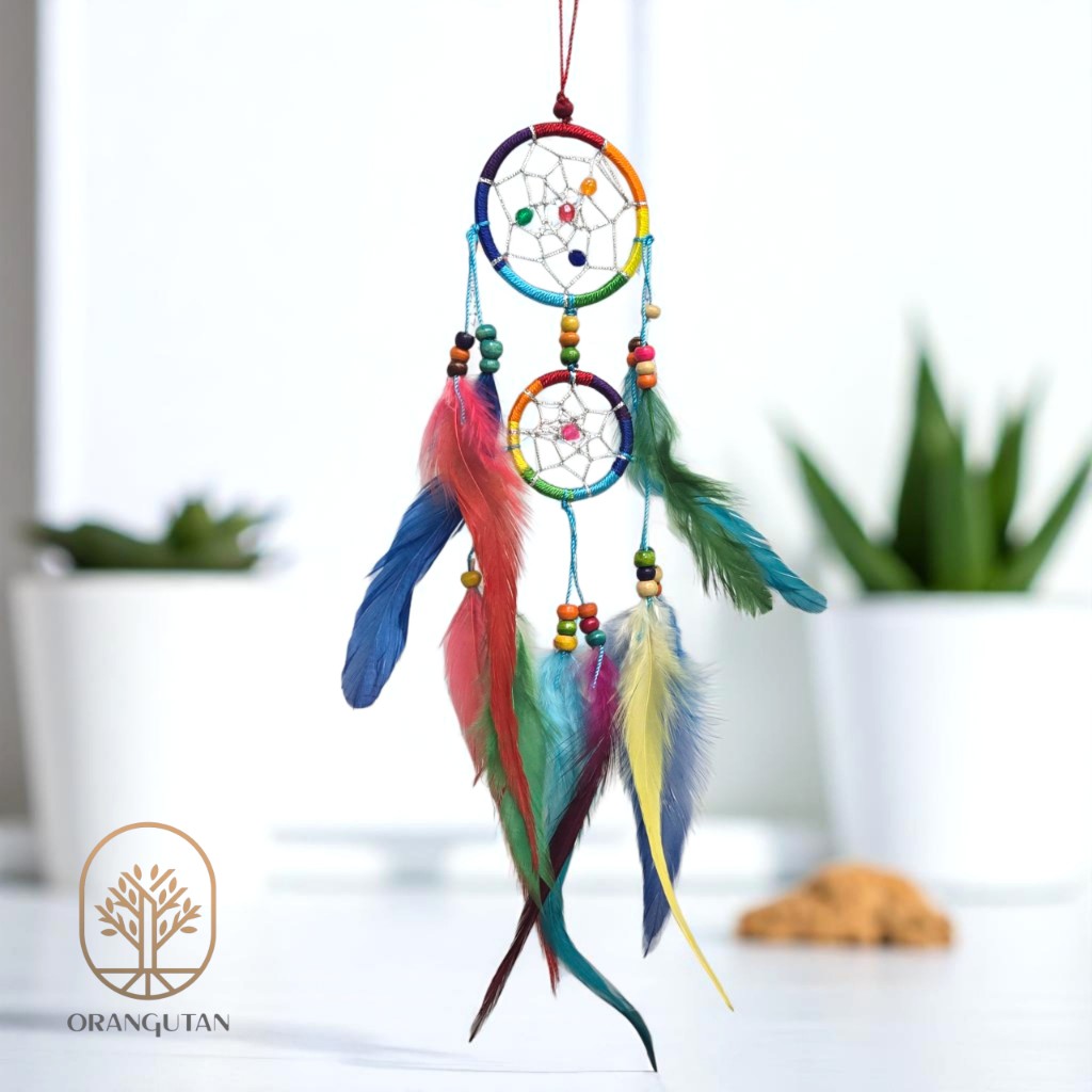 10000687 ドリームキャッチャー レインボーカラー 虹色 アジアン雑貨 魔除け お守り ネパール エ...