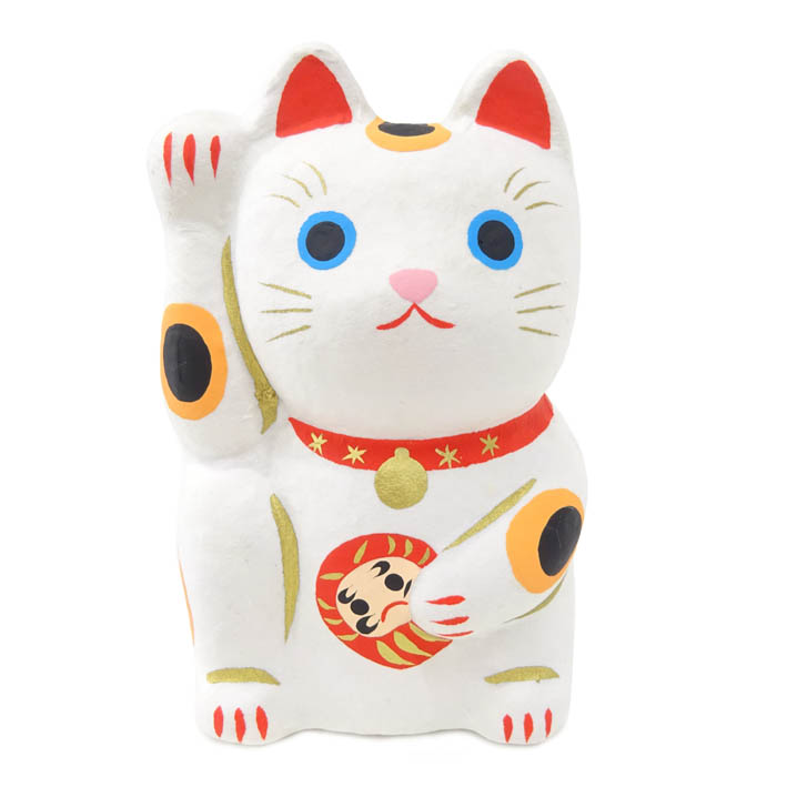 申し訳ございませんが、ギフト包装(のし)は 対応しておりません。ご了承ください。 サイズ W85×H140×D85(mm) 商品内容 ・紙張子の置物 特 徴 招き猫(まねきねこ)は、日本の伝統的な縁起物で、幸運や商売繁盛、金運アップ、家内安全をもたらすと言われています。 達磨(だるま)は「七転び八起き」で知られ、健康祈願・商売繁盛・目標達成の願掛けとして親しまれています。 注意点 燃えやすいので火に近づけないようご注...[詳細を見る]