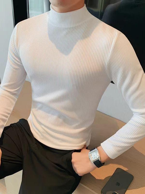 Tシャツ メンズ 通気性 吸湿速乾 イージーケア 起毛 薄手 長袖 モックネック スリムフィット 細やかな質...