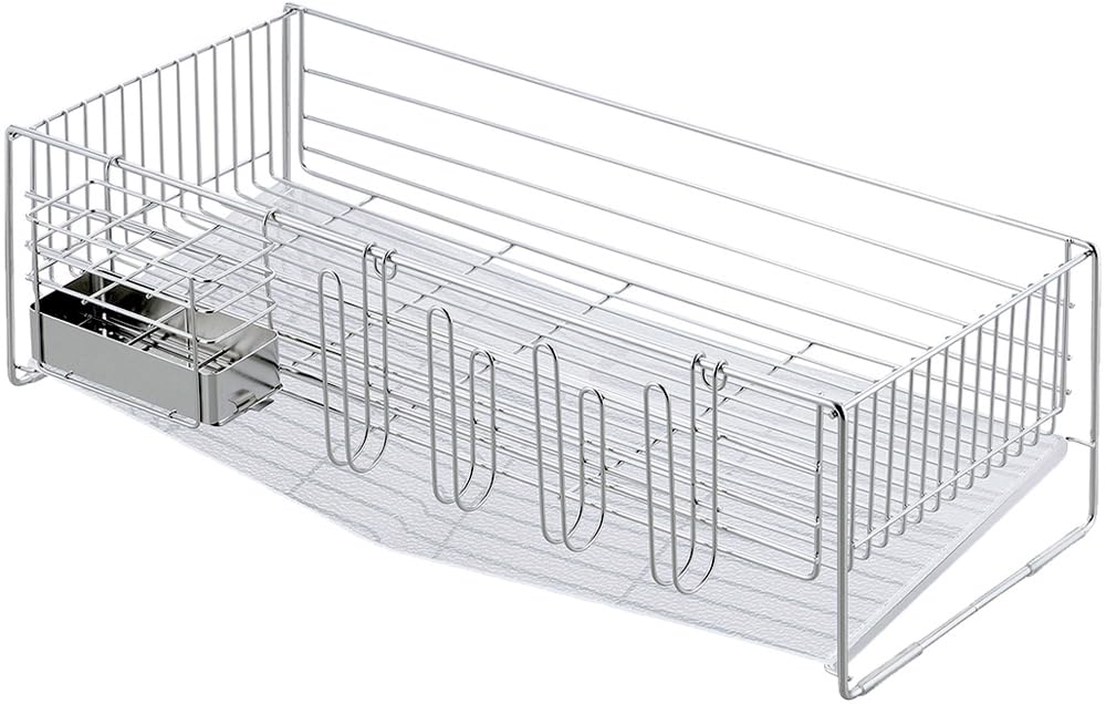 ・サイズ(約):幅24×奥行54×高さ16.7cm(グラスホルダー・箸ポケット除く)、バスケット内寸/幅22×奥行52×深さ10.5cm、トレー/幅23×奥行52.5×高さ1.1cm、グラスホルダー/幅22×奥行5×高さ12cm、箸ポケット/幅14×奥行7.2×高さ10cm・本体重量(約):1.87kg・素材・材質:本体・グラスホルダー・箸ポケット/18-8ステンレス、斜めトレー/アクリル樹脂、脚ゴム/シリコーンゴム・生産国:日本説明 清潔感のあるアクリルトレーの水切り トレー...[詳細を見る]