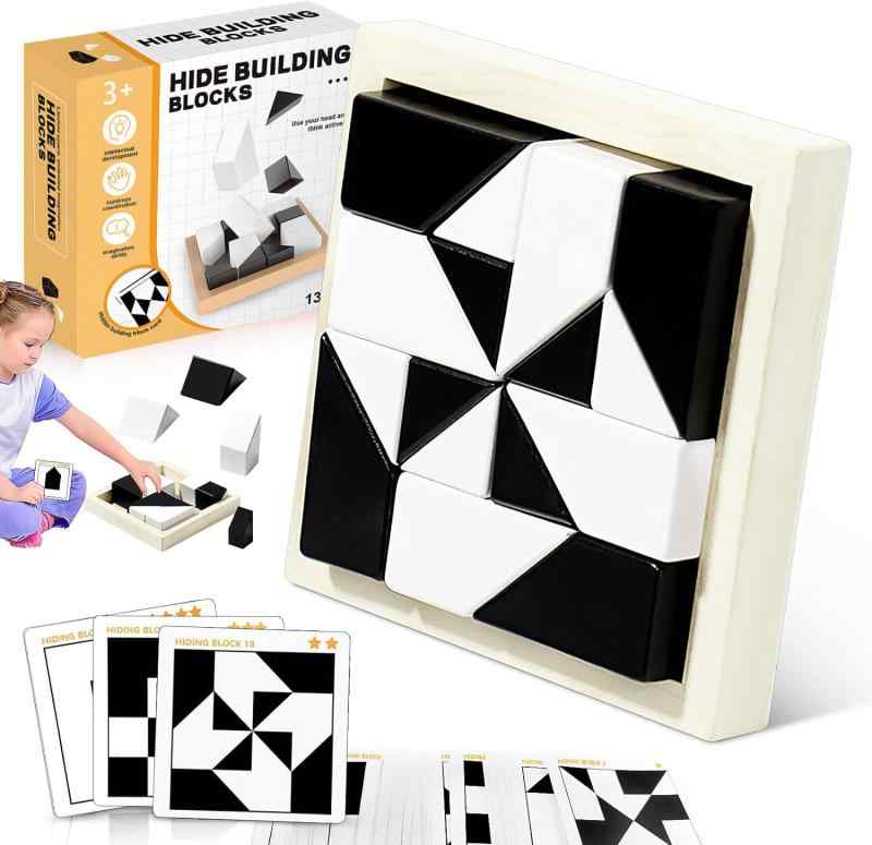 akinashi おもちゃ 知育玩具 脳トレ 積み木を隠す 観察力 思考力 パズル お題カード40枚計80問 3歳以上 子供 大人 高齢者 プレゼント【遊び方】お題カードに沿い、デザインを完成しましょうもちろん、ただ積木を並べるのではなく、頭を働かせ、黒と白との二色の積木を、どのように上手くお互いを隠して、出されたお題と同じ図案を完成させる、脳トレのできる知育玩具になります。従って、ポイントは「隠す」にあります。【梱包...[詳細を見る]