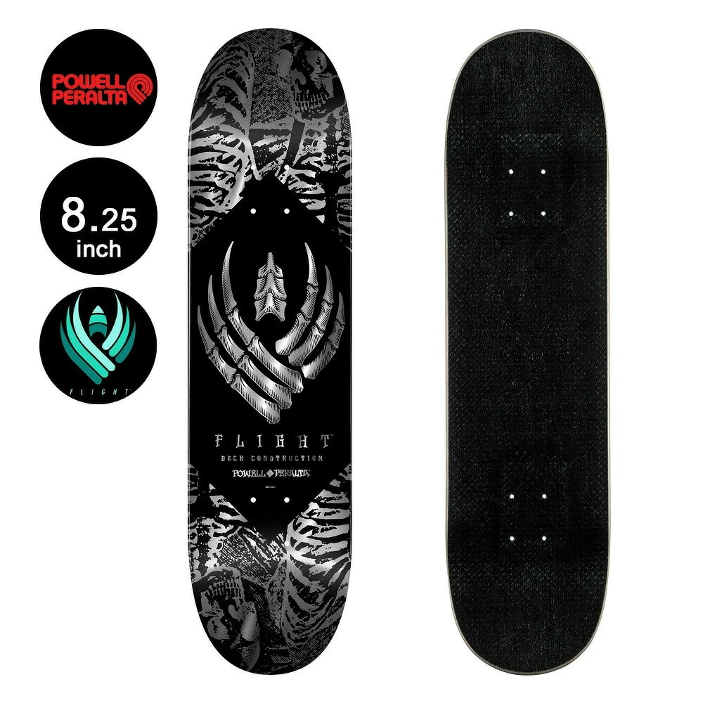 ■POWELL PERALTA 商品詳細 ブランド:POWELL PERALTA(パウエル・ペラルタ) モデル:FLIGHT® SKELTON SILVER FOIL DECK 正規輸入品 サイズ シェイプ:243 幅:8.25inch(約20.95cm) 長さ:31.95inch(約81.15cm) ノーズ:6.88inch テール:6.63inch ホイールベース:14.25inch FLIGHT® 通常のデッキより25%薄く、200%強く、10%軽く、10%高く跳ね返り、通常の3倍長持ち。 跳ね返りが失われず、車に踏まれても折れない...[詳細を見る]
