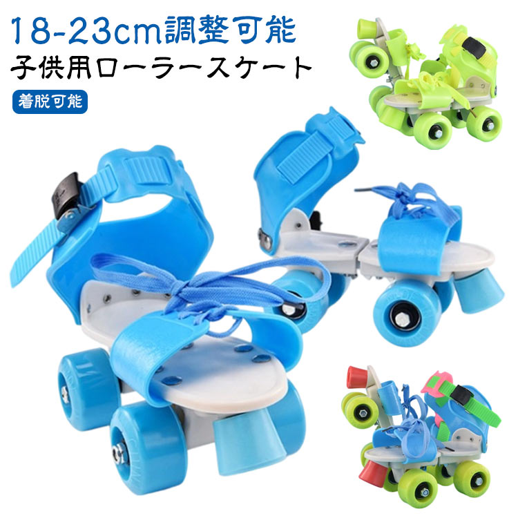 【子供用ローラースケート】18-23cm調整可能!足が成長してもずっと使える。前後・足首・つま先部分が調節できるのでほとんどの靴に取り付けが可能です。普段から履いている靴につけられるため、靴擦れの心配もありません。つま先部分は紐でしっかり固定、足首部分はワンタッチで取り外せるストラップ仕様です。車輪が四隅に配置されており、安定感に優れ小さなお子様でも安全に滑れます。ウィールにはスムーズな回転を実現する...[詳細を見る]