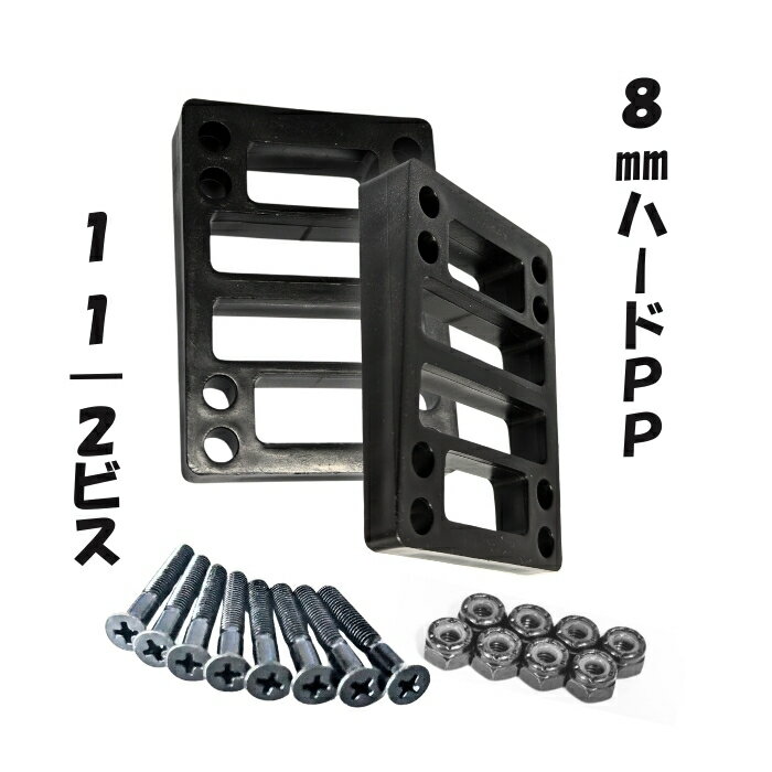 スケボー ライザー パッド +ビス セット 8mmハードPP+1 1/2インチビス ライザーパッド スケートボード ロングボード サーフスケート クルーザー ビスとセットで悩む必要なし!振動を和らげ足元安定!ウィールバイト防止にも◎耐久性抜群のスケボー用ライザーパッド 【高品質】 ゴム特有の臭いなし◎老化しにくいウレタン製(PU)で長寿命、かつ反発力に優れており弾きの力にも影響されにくい。ブッシングやウィールと同素材のス...[詳細を見る]