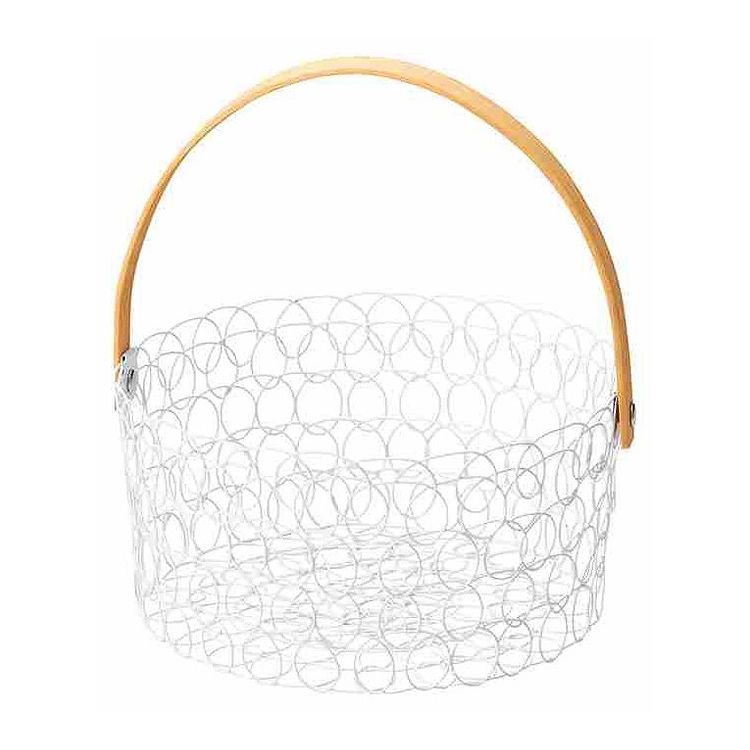 取っ手付きのワイヤーバスケット。卓上の小物の収納や、インテリアに。ギフトラッピングの土台としても使える。サイズ(約)幅20×奥行20×高さ23cm材質:鉄・木【代引きについて】こちらの商品は、代引きでの出荷は受け付けておりません。【送料について】北海道、東北、九州は送料を頂きます。沖縄、離島は配送不可。[詳細を見る]