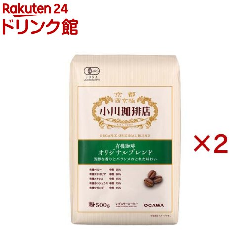 お店TOP>コーヒー>レギュラーコーヒー>小川珈琲店 有機珈琲 オリジナルブレンド 粉 (500g×2セット)商品区分:有機JAS認定【小川珈琲店 有機珈琲 オリジナルブレンド 粉の商品詳細】●芳醇な香りとバランスのとれた味わい【召し上がり方】・一人あたり(カップ120ml)につき、7〜10gのコーヒー(粉)がめやすです。分量はお好みに合わせて増減してください。・抽出器具を使用してお召し上がりください。【品名・名称】有機レギュラ...[詳細を見る]