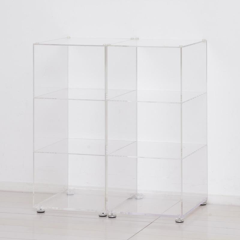 透明のアクリル板ですので、解放感があり圧迫感なく設置できます。横に並べたり縦に積み重ねたり、設置場所に合わせて置き方を変えられます。置く場所を選ばず、どこでも便利に使えます。商品サイズ W26×D29×H54.5(56)cm(1ヶ)商品重量 約3.3kg(1ヶ)梱包サイズ 約60×34.5×61.5cm(3辺計約156cm)梱包重量 約10kg材質 アクリル(側板5mm厚、棚板4mm厚、地板8mm厚)商品詳細サイズ 空間内寸(3ヶ所)W25×D29×H17.5cm原産国 中...[詳細を見る]