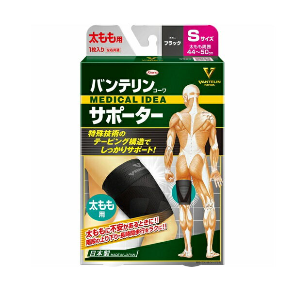 興和 バンテリンコーワ サポーター 太もも用 Sサイズ 商品説明 『興和 バンテリンコーワ サポーター 太もも用 Sサイズ』 左右共通 太もも周囲 44〜50cm 日常で感じる太ももの不安・違和感を特殊技術のテーピング構造によりしっかりサポート! 1.筋肉のブレを抑え、脚の運びをスムーズに 前のX字型と後ろのV字型テーピング編みを側面で繋げることで太ももを360度サポートし、立ち座りや脚の運びをスムーズにします。 2.サポー...[詳細を見る]