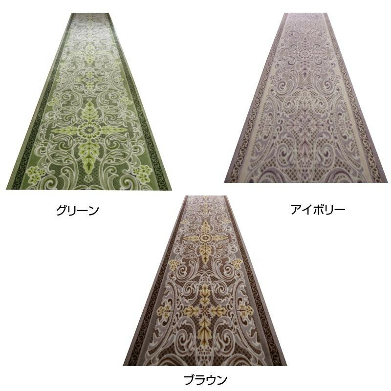 ヨーロピアン廊下敷き 【サイズ展開】 →60×180cm →60×240cm →60×330cm →60×420cm →60×510cm →80×180cm →80×240cm →80×330cm →80×420cm →80×510cm →80×600cm →80×700cm ●優雅にして伝統的な王朝柄が美しく、廊下や広縁、リビングやキッチンを高級感のあるお洒落な空間へと導きます。 ●耐久性・耐水性・防ダニ防汚作用に優れ、お手入れが楽なのも人気のひとつです。ほど良いクッション性があるので膝や足裏にも優しく防音効果もバ...[詳細を見る]